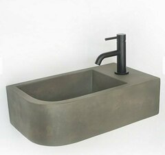 Natural concrete stone wall-hung curved cloakroom basin (440 x 250mm) with right-handed tap hole. This space-saving basin from Arezzo brings modern industrial design to any bathroom/cloakroom. Waste and bottle trap not included. This product is brand new and unopened in original packaging. (pick-up in SE5 8QJ) Price: £100 (on sale for £150 + delivery costs) Manufacturer's details: Width: 400mm Height: 110mm Depth: 230mm Drain Diameter: 45mm Range: Arezzo Stone Colour/Finish: Natural Concrete Material: Concrete Stone Style: Modern Wall mounted Tap holes: 1 No Overflow Weight: 10kg Basin comes with right-hand tap hole -