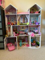 The upholstery (not the original fabric) on the chair is in good condition. There are some marks on the footstool. There are some scratches on the base of the chair.