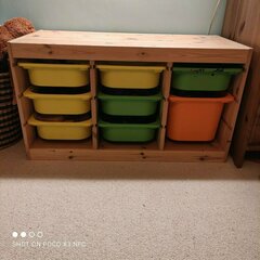 Trofast storage unit with a selection of yellow, green and orange drawers (I think we also have a couple of spares in the attic which I can dig out and throw in).
