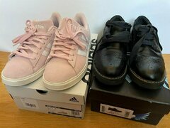 Hi I selling there as nearly new. The Angry Angels (Startrite brand) black leather shoes have only been worn indoors for a couple of hours, which can also be seen by the still clean sole. Size UK 7, comes with original box Selling for £ 20 The adidas pink suede trainers Grand Court 2 have been worn once outdoors so are still nearly new as well. Size UK 7, comes with original box Selling for £ 20