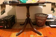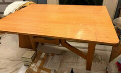 This is a beauiful midcentury style table, made in the 1950s. It is really good condition as has been in my family all its life - so far! The table is a gate leg table, meaning the top is made up of three sections and the two sides can neatly fold down, so if not in use it doesn't take up much space and is easy to transport!