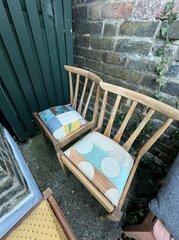 - 3 wooden chairs with removable fabric seating pads
