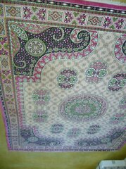 For sale - a large oriental carpet / rug, the background colour is light yellow with a red, green and white pattern. This item has had only light use. It is 124 inches x 100 inches. (3.1M x 2.5M), £50 i) Mahogany two tier circular/round side table with beautiful curved shaped legs and a lower shelf, some marks in the centre of the table, £0, FREE approx diameter and height 19in x 27in ii) Mahogany octagonal two tier centre table - £0, FREE approx diameter and height ii) 26in x 27in