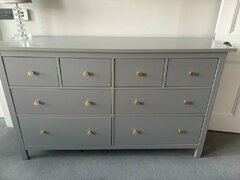 Large Hemnes chest of drawers for sale with replacement brushed gold knobs (more expensive than original chest)