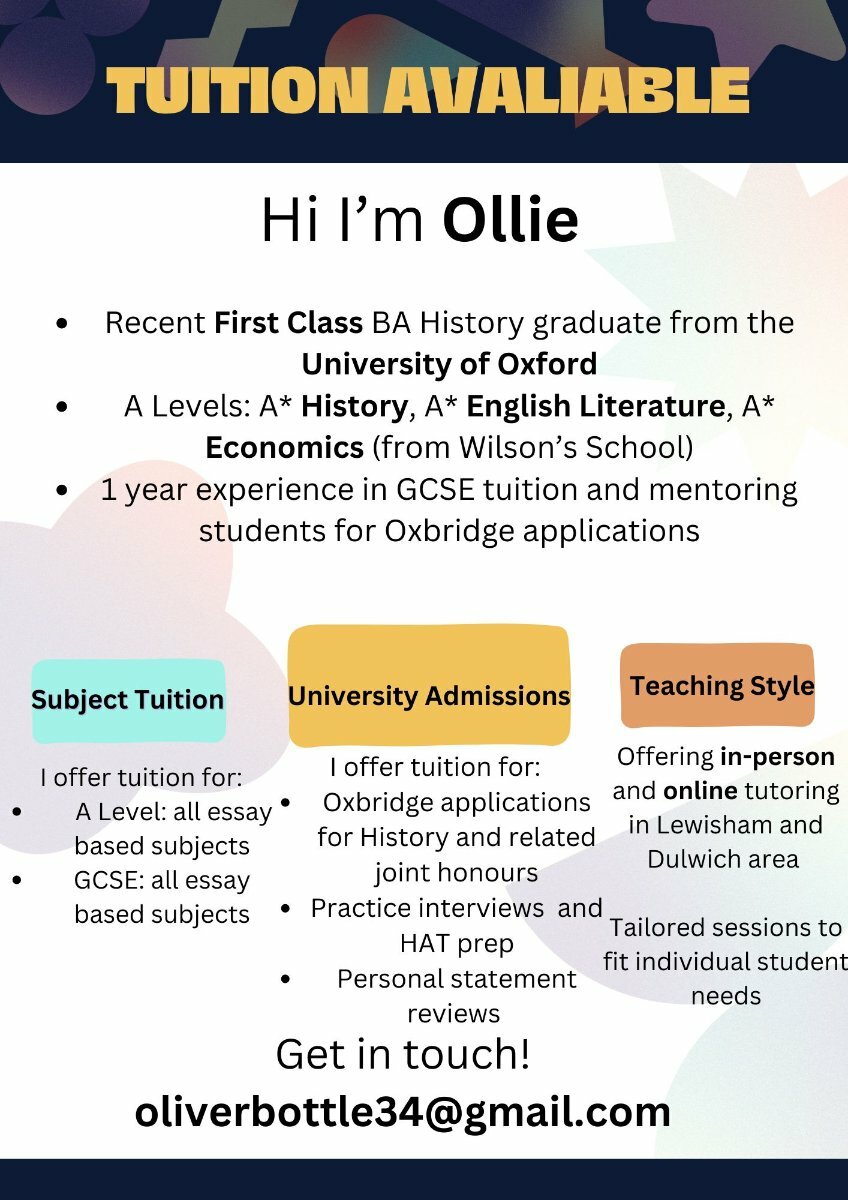 Tutor for Oxbridge applications and A-Level essay-based subjects