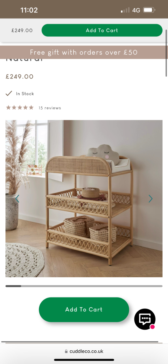 Baby changing table, rattan CuddleCo £100