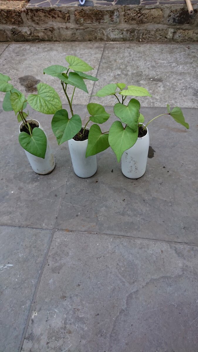 purple sweet potato slips, grown from potatoes I bought at Brixton market in April, and now I have many more than I have room for in my garden.