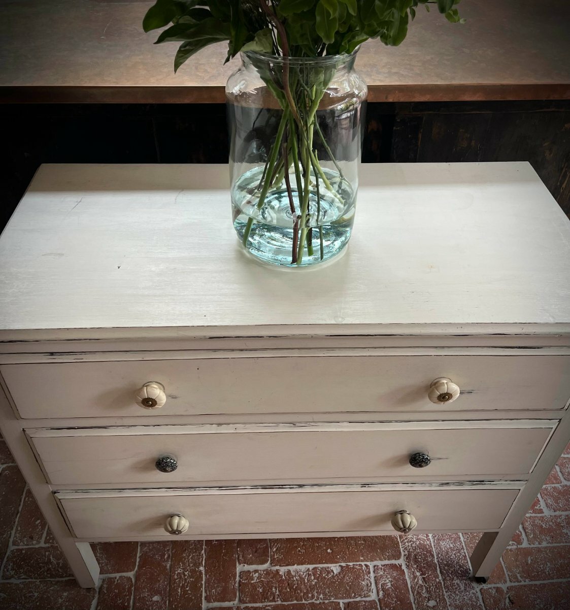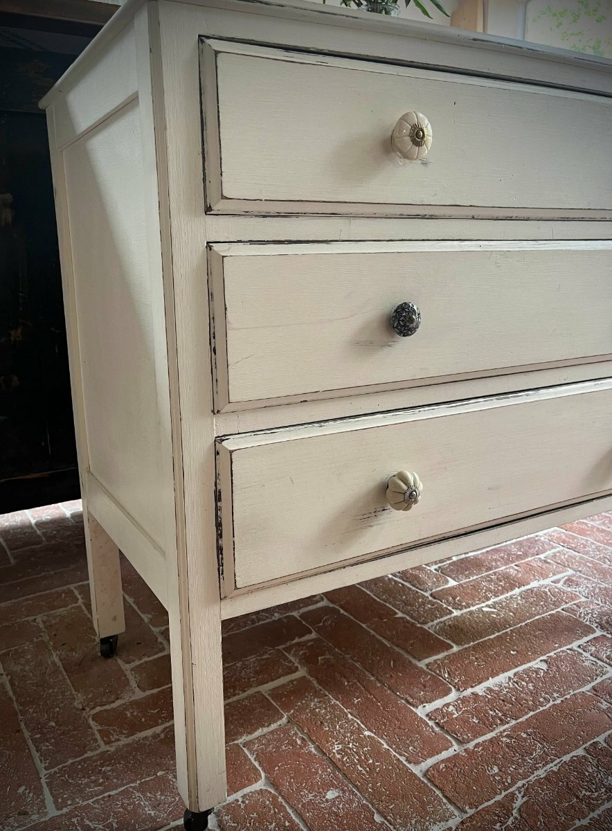 The drawers are on casters. Could do with a freshen up as there are some marks here and there.