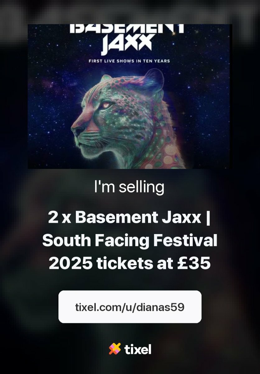 2 general standing tickets to see Basement Jaxx play at South Facing Festival, Crystal Palace Park, on Sat 23 August.