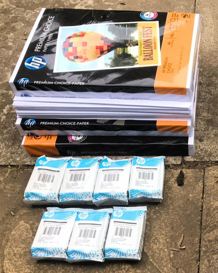 HP Envy 4524 x2! x3 HP Black Ink E5Z02A Normally £15 Each x4 HP Tri Colour Ink E5Z01A Normally £15 Each x4 Reams A4