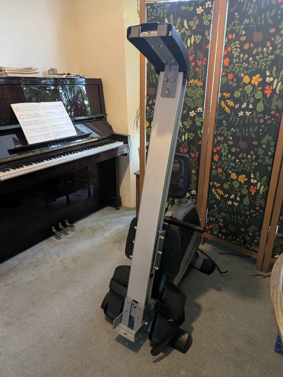 Rope pull system with magnetic resistance in 8 stages LCD display of 5 functions including time, distance covered, oar strokes, calories and energy consumption Visual alarm for upper pulse limit Sweat resistant key pad Flywheel: 4kg Pulse recovery fitness test and target settings Folding capability Assembled Dimensions (LxWxH): 219 x 56 x 94cm Folded Dimensions (LxWxH): 92 x 54 x 147.5cm Maximum User Weight: 130kg Product weight: 35kg