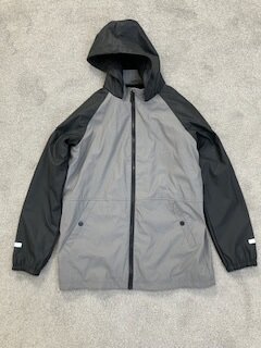 Grey & Black Hooded Jacket Raincoat. Age 13-14