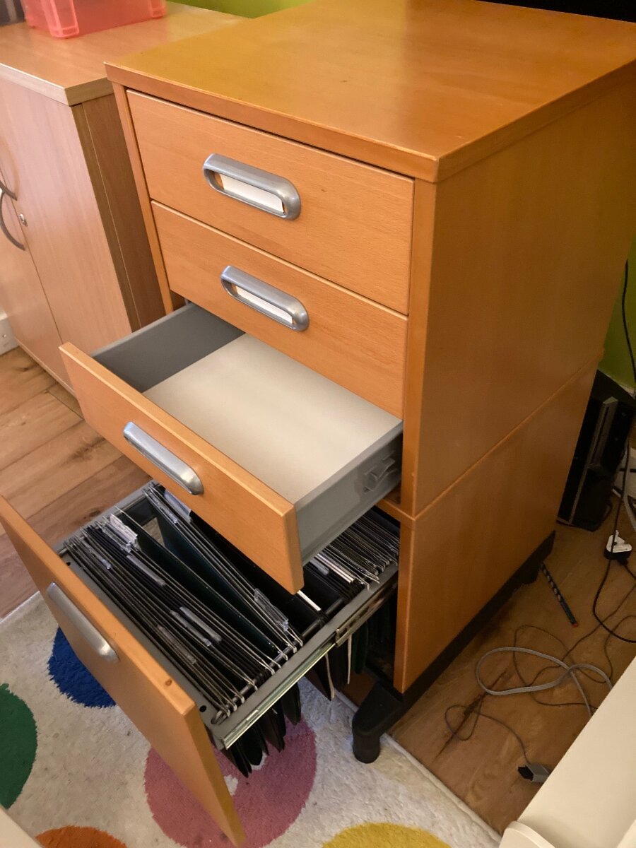Megansdad Posted September 21 Share Posted September 21 (edited) Ikea office beech effect storage unit. 3 drawers and hanging file drawer (see pics) set on metal feet. Many hanging files also included. 45cm wide x 42cm deep x 95cm height Solid bit of furniture in good condition. Can deliver locally (just need a little help to get it out of the car!). £25 to collect, £5 to deliver. Edited September 21 by Megansdad Added measurements Link to comment https://www.eastdulwichforum.co.uk/topic/367495-ikea-office-unit-with-3-drawers-and-file-storage/ Share on other sites More sharing options...