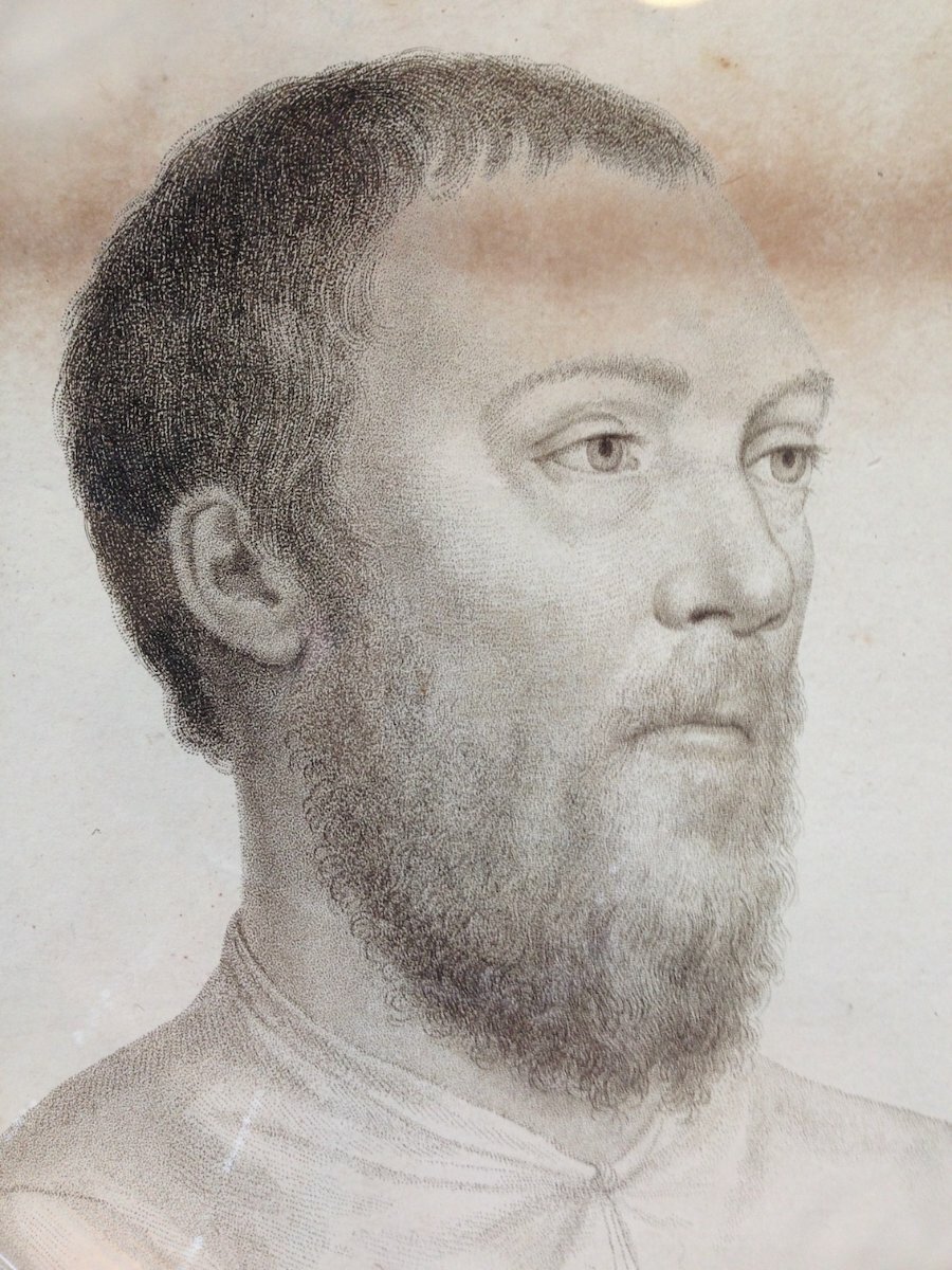 Antique Hans Holbein Print of an Unknown Man in Beautiful Original Victorian Wood Frame