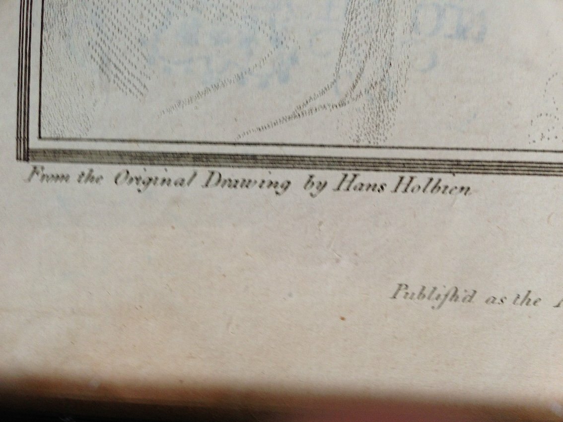Text beneath reads: 'From the original drawing by Hans Holbein'