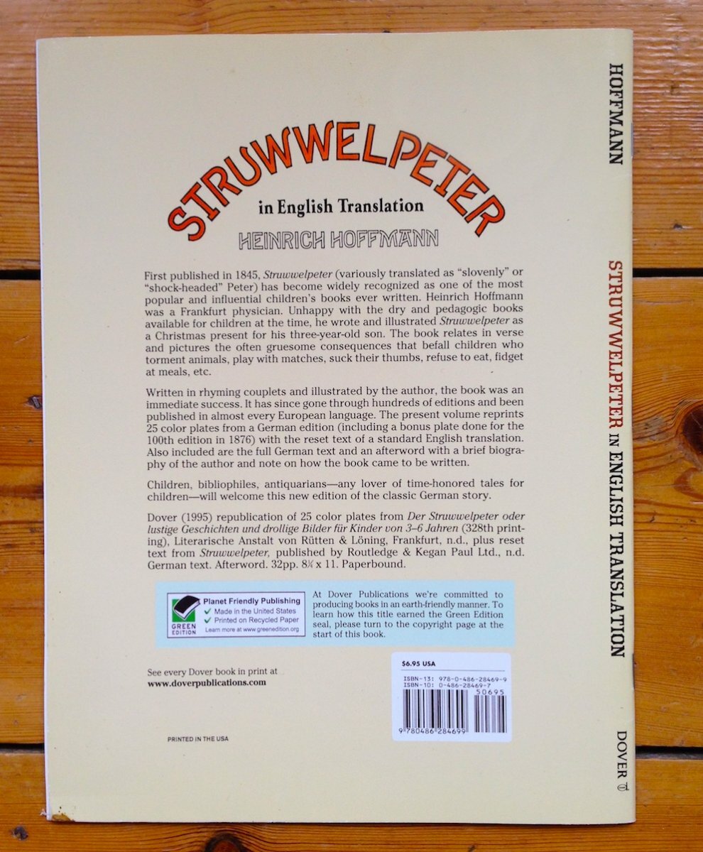 euan Posted September 23 Share Posted September 23 Struwwelpeter By Heinrich Hoffmann £5 Dover Publications Inc. New York Green Edition Printed in USA 1995 Paperback Very slight watermark on the bottom of first 4 pages Collection Camberwell SE5 Link to comment https://www.eastdulwichforum.co.uk/topic/367576-struwwelpeter-by-heinrich-hoffmann-book-for-sale/ Share on other sites More sharing options...