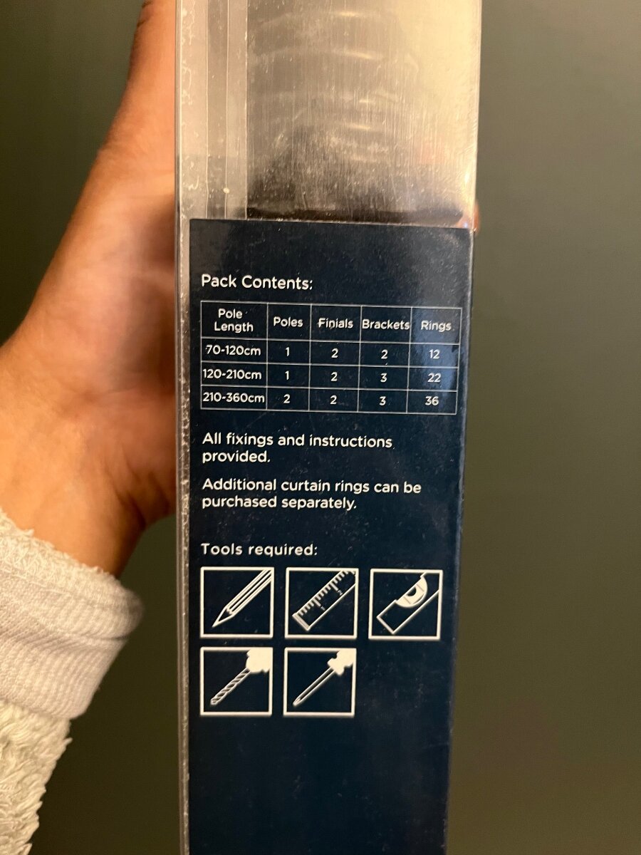 srisky Posted September 28 Share Posted September 28 (edited) Unopened. Extendable black metal curtain pole with finials. Diameter: 16/19mm Length: 70-120cm. Originally: £10. Looking for £5 ONO. Collection from Penge or can drop off depending on location. Edited September 28 by srisky Adding photos Link to comment https://www.eastdulwichforum.co.uk/topic/367745-bnwt-black-metal-curtain-pole-for-door/ Share on other sites More sharing options...