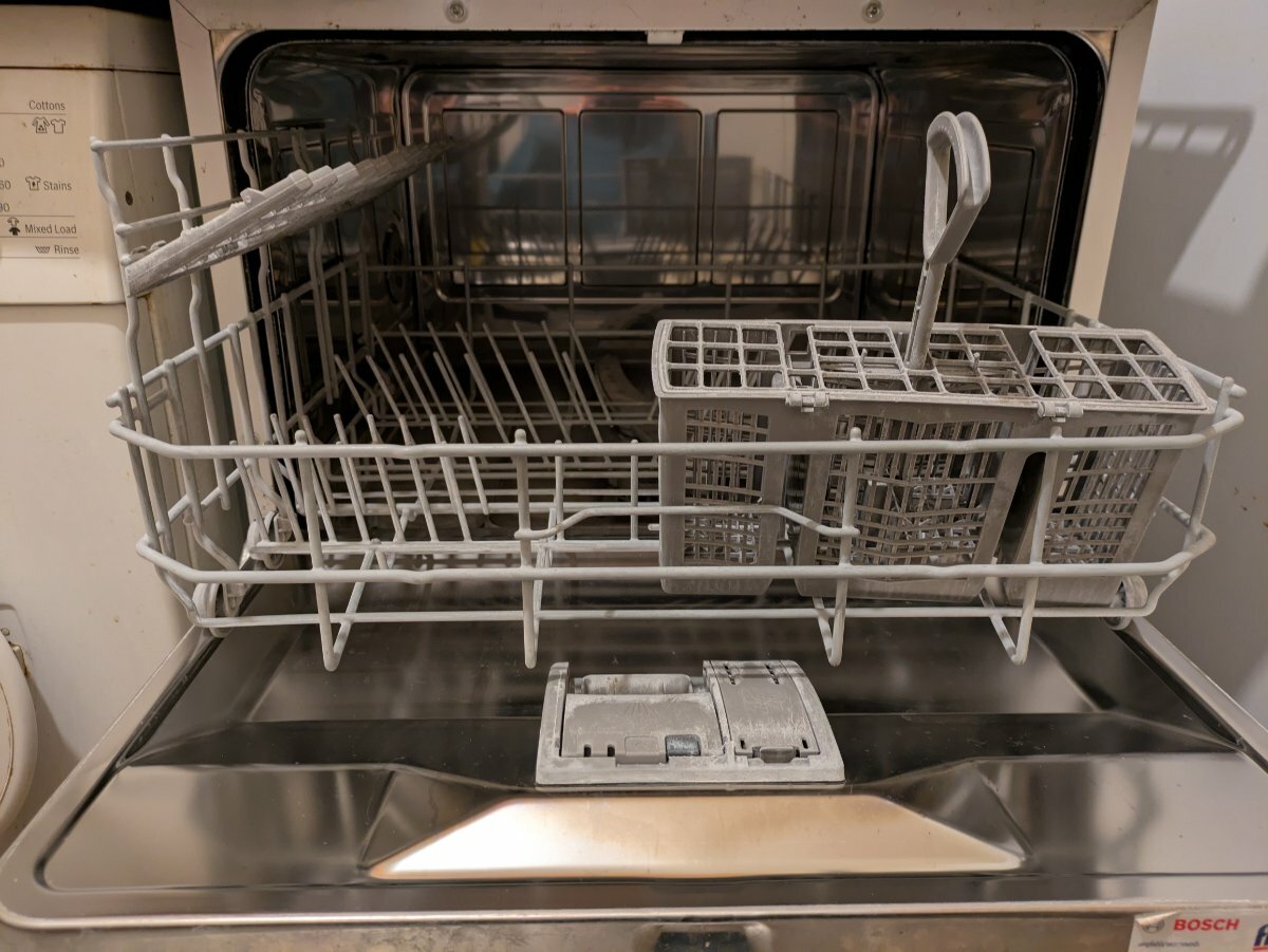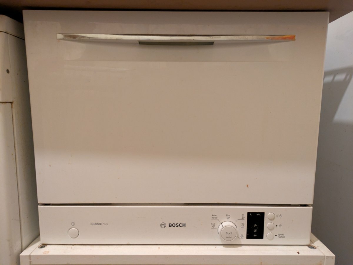 Really great dishwasher, only selling as I'm moving house. This is a small dishwasher perfect for two people or a smaller kitchen, could be out on the counter top but I have it under counter with a shelf underneath. It's pretty quiet and I have never had any issues with it.