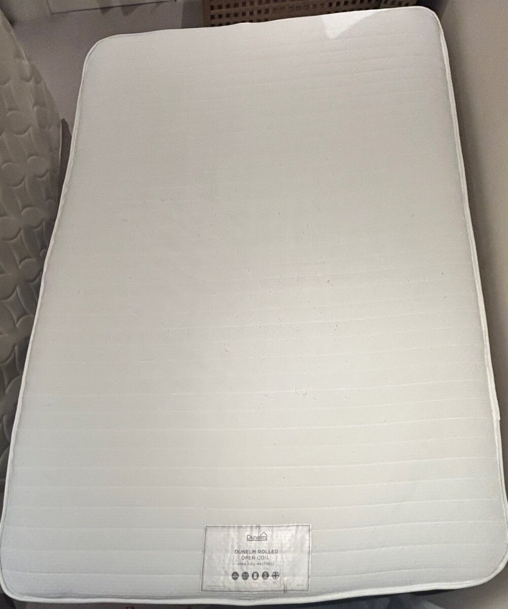 Dunelm double mattress for sale. Less than 2 years old but just not firm enough for me. Would be ideal for someone who needs more spring, or for a spare bedroom that gets slightly less use. Has never been slept on without a mattress protector, and is in great condition.