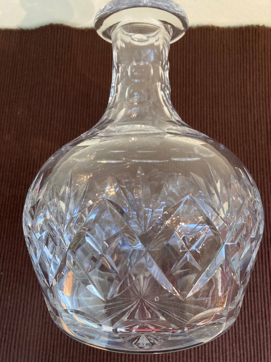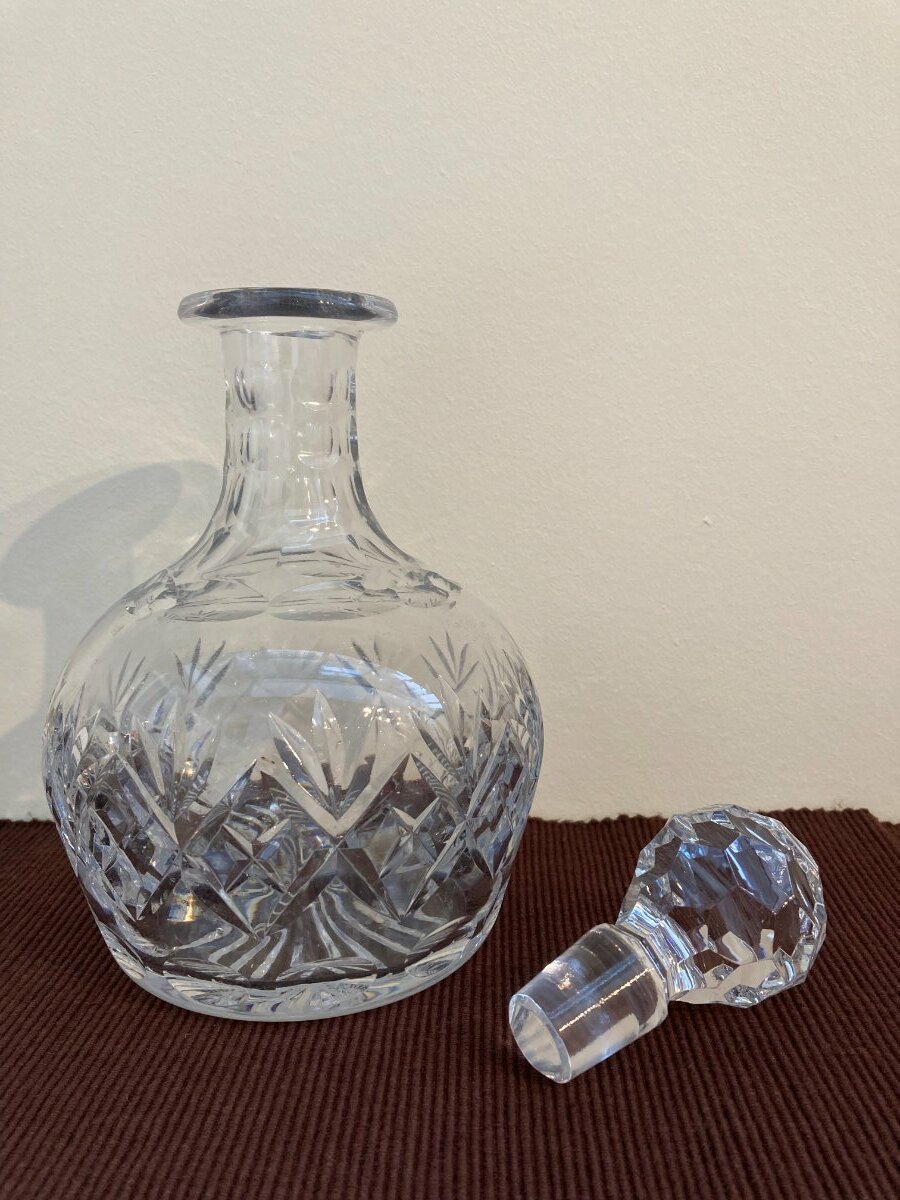 HMKay Posted 22 hours ago Share Posted 22 hours ago This is a lovely cut-glass decanter with a criss-cross and fan pattern, and oval dimples around the base and neck, ideal for holding sherry, port or spirits. It has a slightly greyish-blue tint (which is characteristic of crystal clear glass) and a heavy base, weighing in at a hefty 1.62kg (3lbs 9 oz). The decanter is in mint condition, without any chips or cracks. Dimensions: diameter: 13cm (5.1”); height (including stopper): 23.5cm (9.25”) Price: £24.99 (cash only) Available for collection from Clapham area Link to comment https://www.eastdulwichforum.co.uk/topic/368301-vintage-crystal-clear-glass-decanter-in-mint-condition-%C2%A32499/ Share on other sites More sharing options...