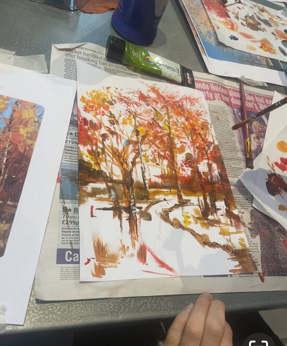You’ll learn to use loose, expressive brushstrokes and explore colour and texture to capture the warmth of autumn trees.