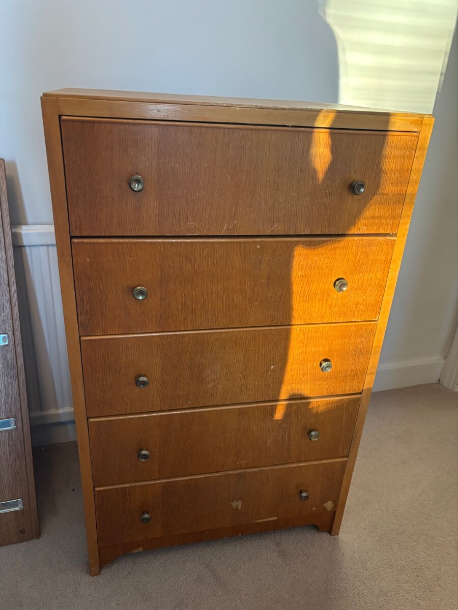 karbar Posted October 12 Share Posted October 12 (edited) Wooden chest of drawers - few nicks that could be sorted with oiling. Feel free to ask for more photos. Dimensions are 61cm width, 41cm depth and 100cm height. *now sold* Edited October 13 by karbar Link to comment https://www.eastdulwichforum.co.uk/topic/368457-sold-chest-of-drawers-%C2%A330/ Share on other sites More sharing options...