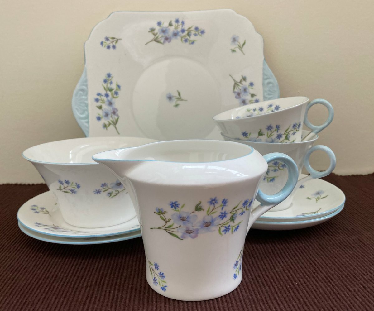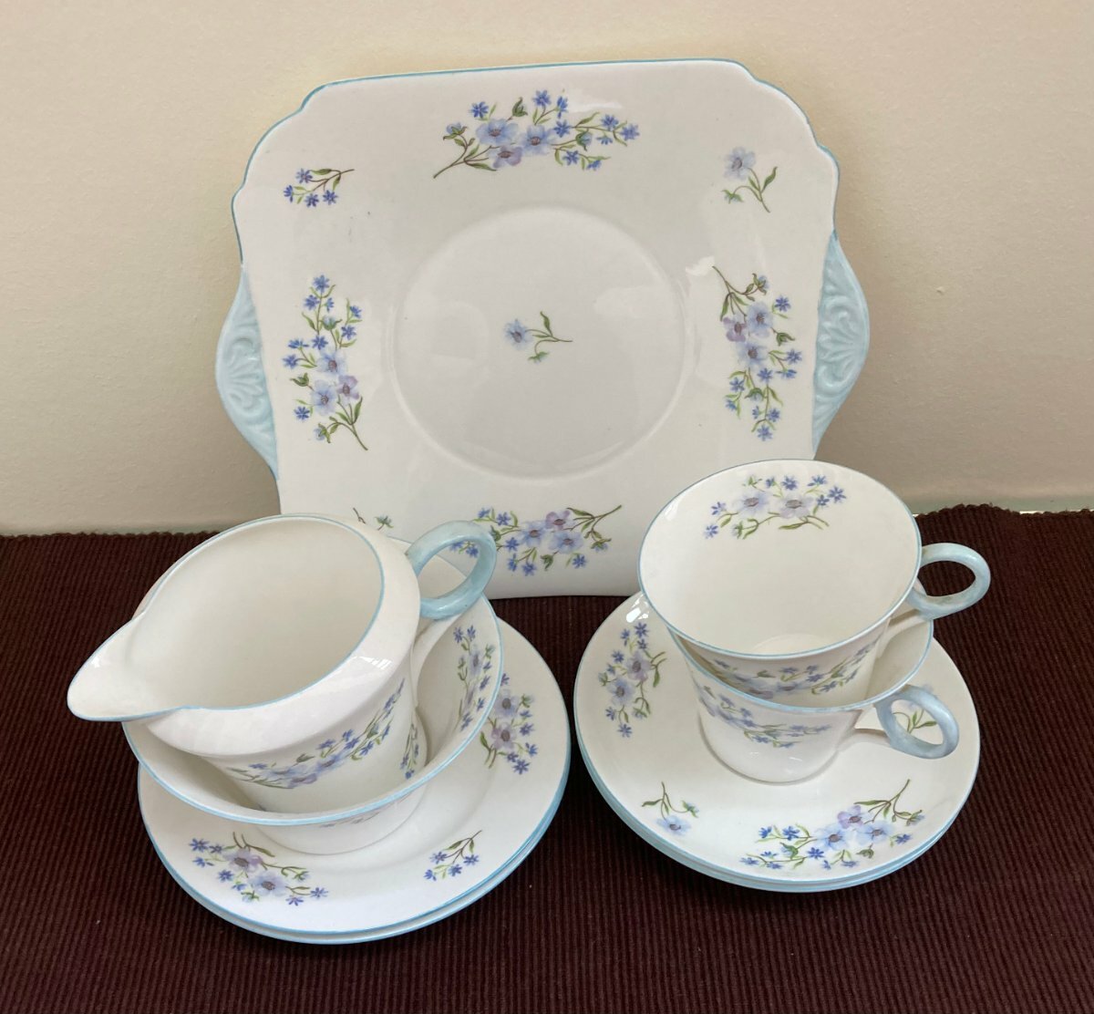 No Longer Available Shelley Fine Bone China Tea Set for Two - Blue Rock pattern, Regent shape - £44.99