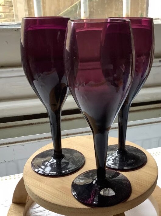 Rare - vintage small wine, cranberry glasses X3 £8.