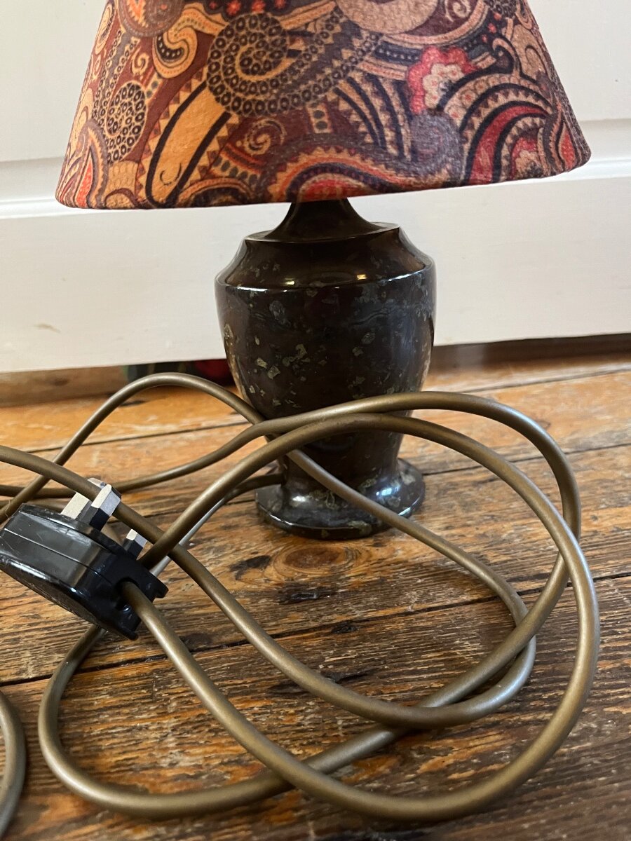 Vintage Cornish Serpentine Stone Lamp with lampshade for sale