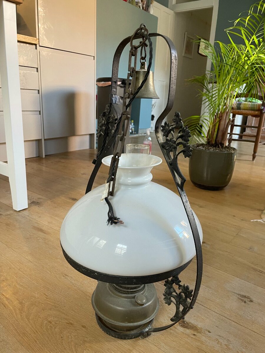 Hanging vintage oil lamp with working electric fitting - £50 ONO