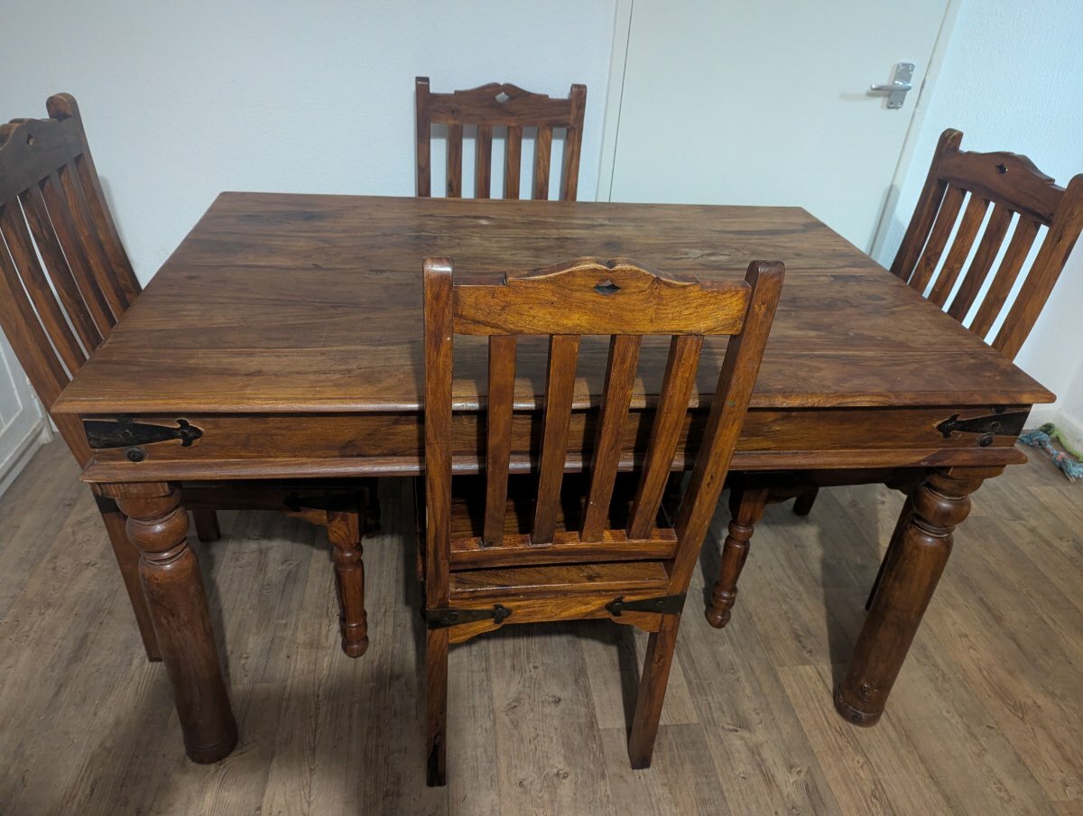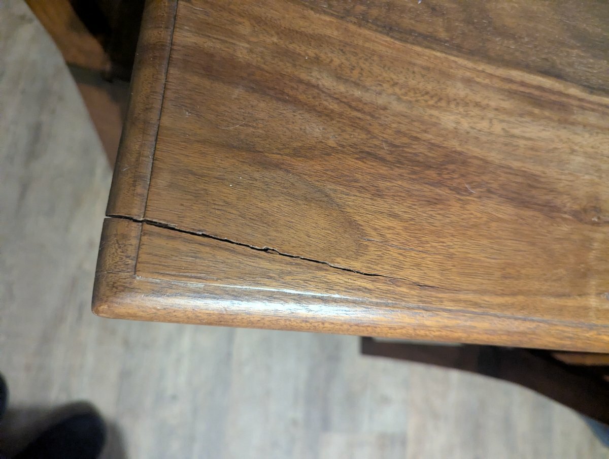 PXL_20251110_173743052.thumb.jpg.0cca40e0a533a07760ba823024b85178.jpgBeautiful table and 4 chairs.  Length 53 inches.  Width 36 inches.  There is a split on one corner as shown.  It hasn't affected how we use the table.  I am selling for 30.00 ono.  The legs come off for transportation.  I am open to a cheeky offer for a quick sale.  Thank you for looking at my listing.