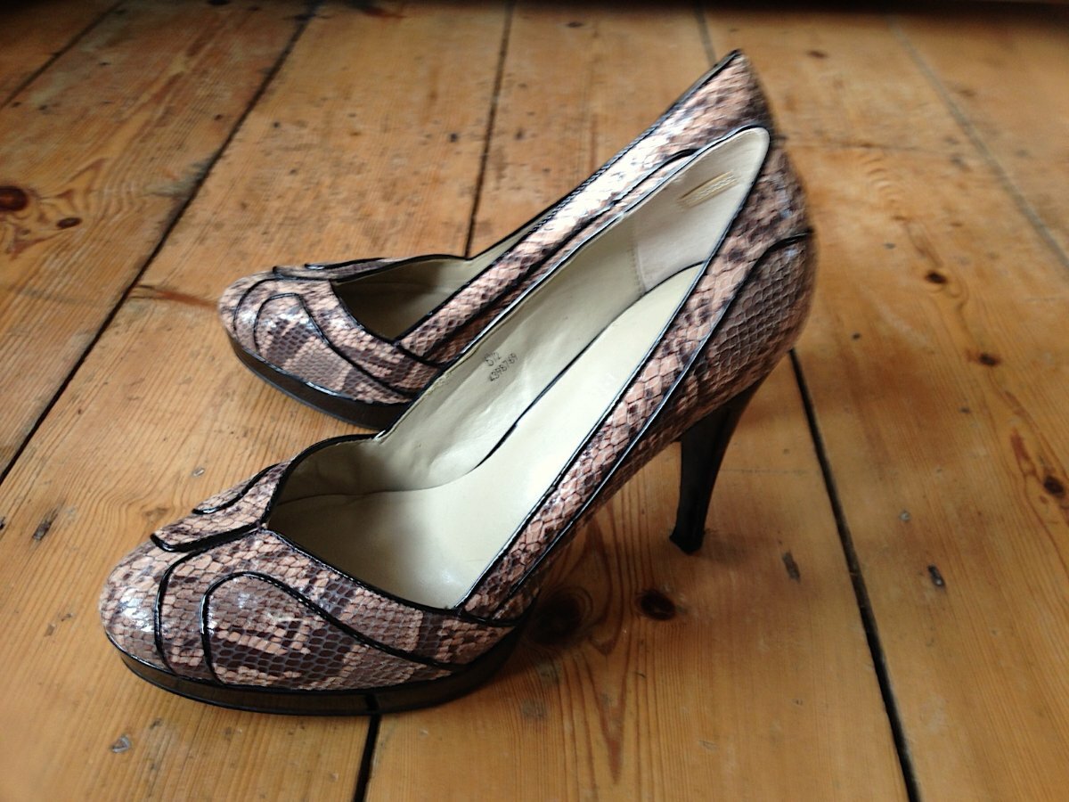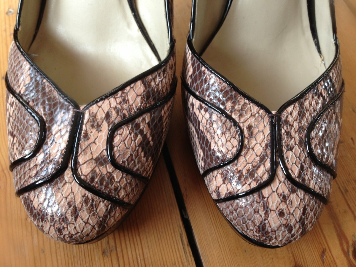 M&S Autograph Insolia Leather Pink +Black Snakeskin Court Shoes UK 6.5 EU 39.5