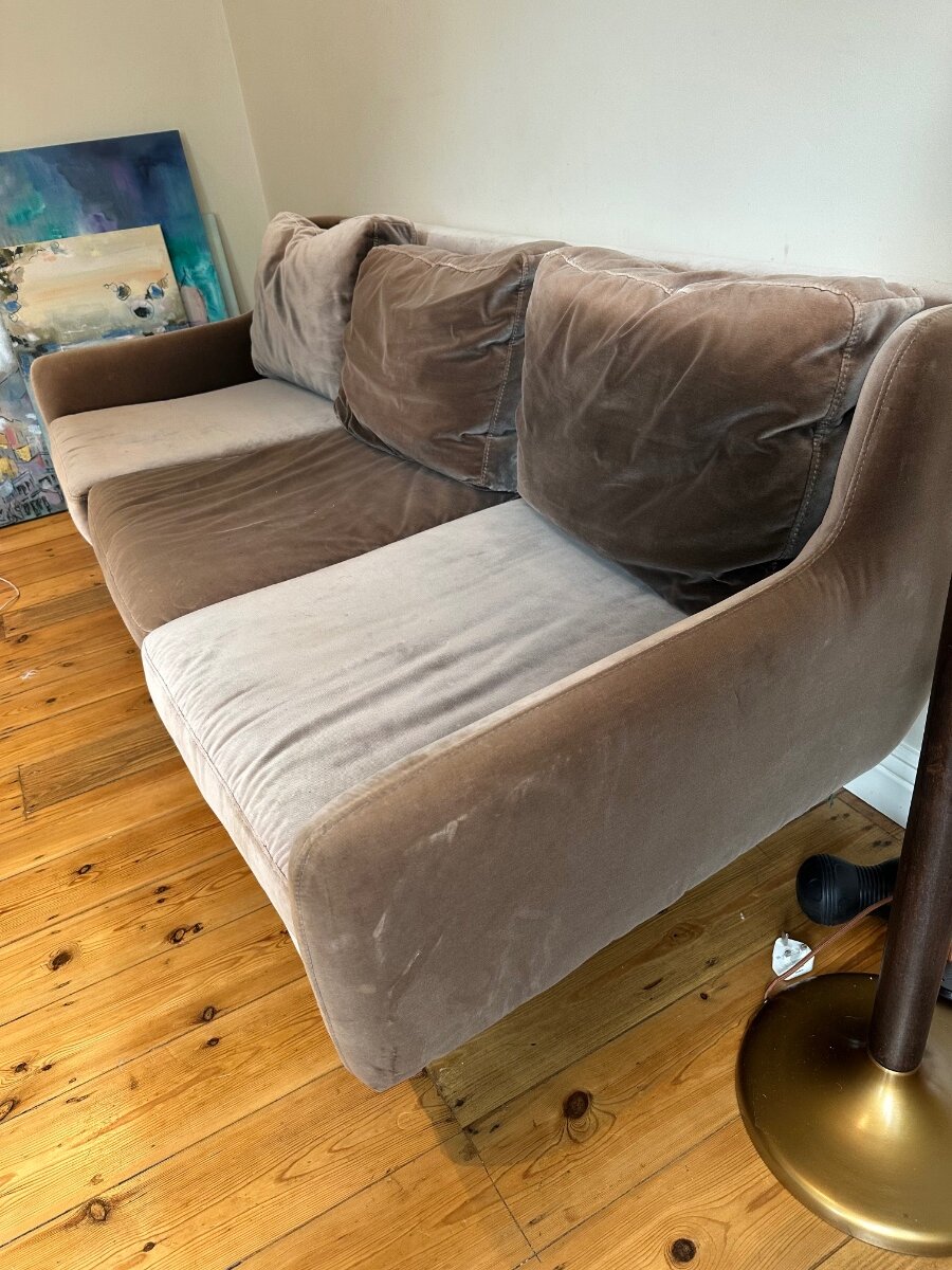 Louis Brasington Posted November 17 Share Posted November 17 Selling velvet sofa , collection only 200 cm Wide x 88 Deep x 55 Height (arm) / 75 (back). 20 cm leg length Golden legs can be removed Link to comment https://www.eastdulwichforum.co.uk/topic/369892-velvet-sofa-greybrown-needs-to-go-%C2%A390/ Share on other sites More sharing options...