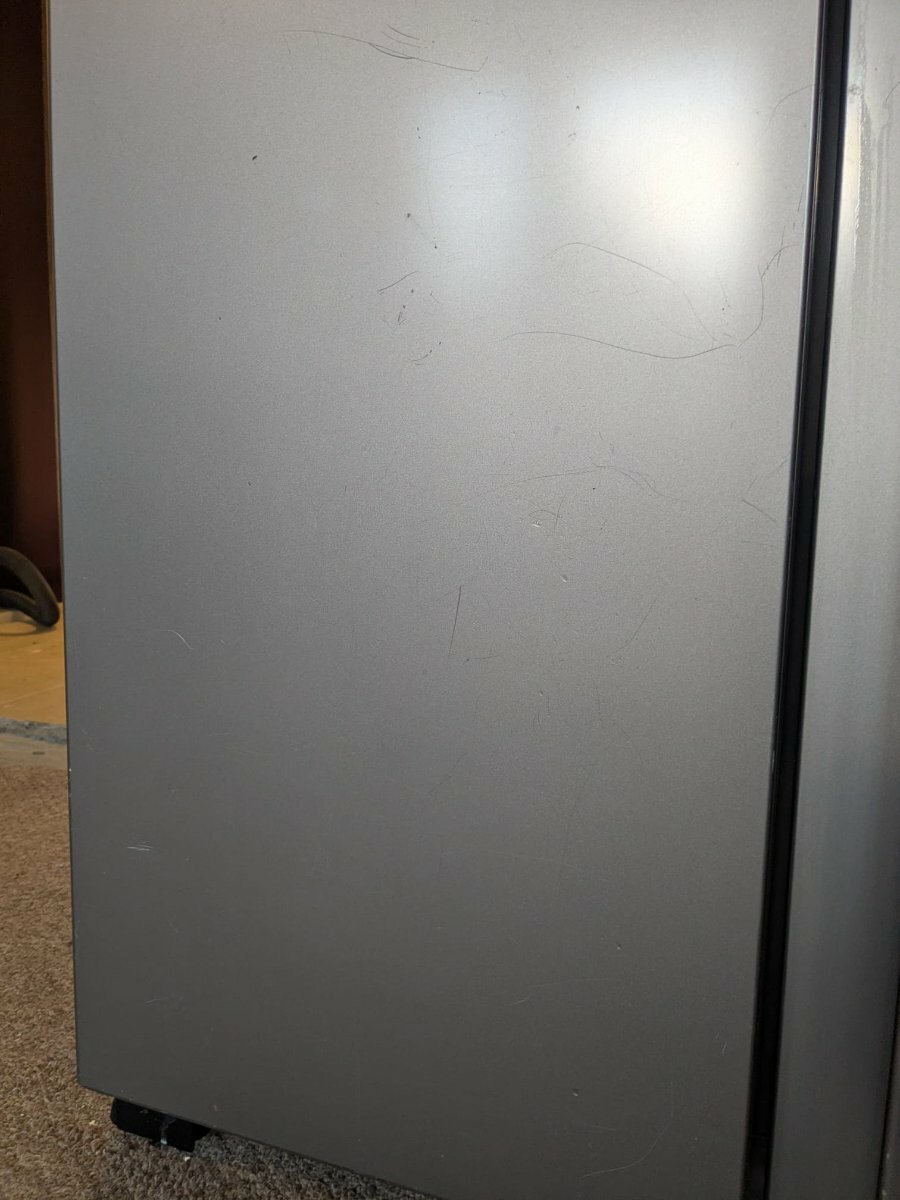 Only selling as we are re-doing kitchen and need a different size fridge. It has been cleaned and in really good condition, other than a few scratches at the bottom of each front door (from our baby playing with magnets...). These are not very visible but I have tried to show in the photos