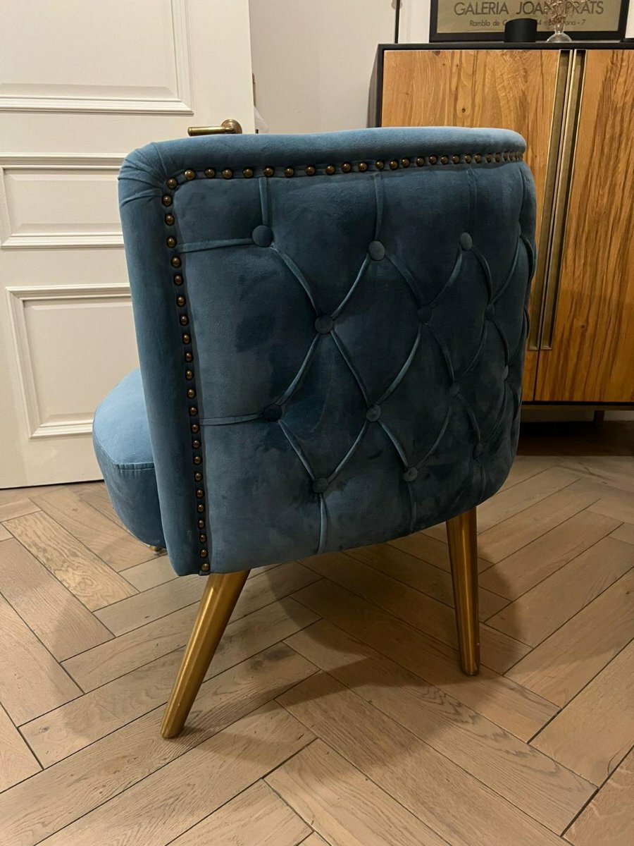 Teal barrel chair in velvet with button tufted surround £20