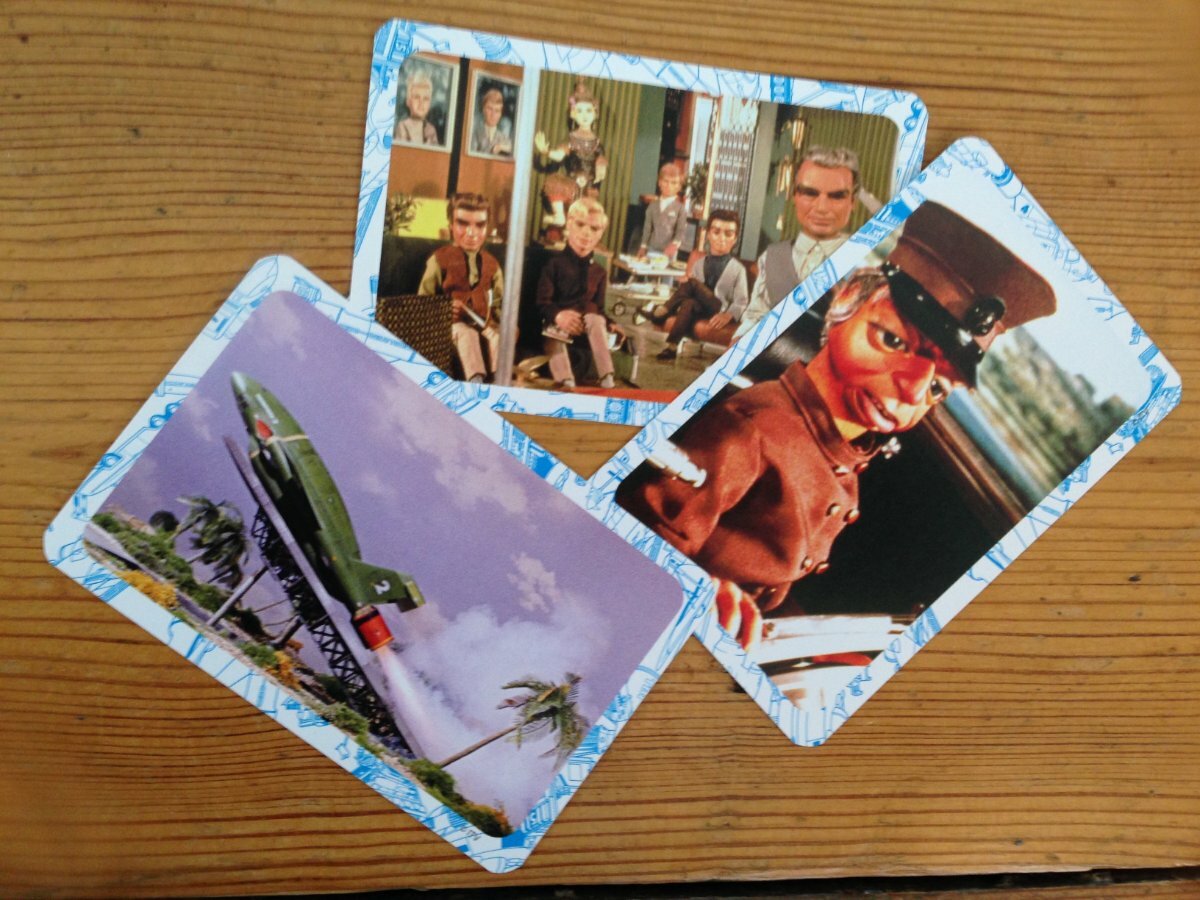 Based on the original 1960s series with picture cards and quiz cards showing Virgil, Thunderbird 2, Lady Penelope, Parker, The Hood etc