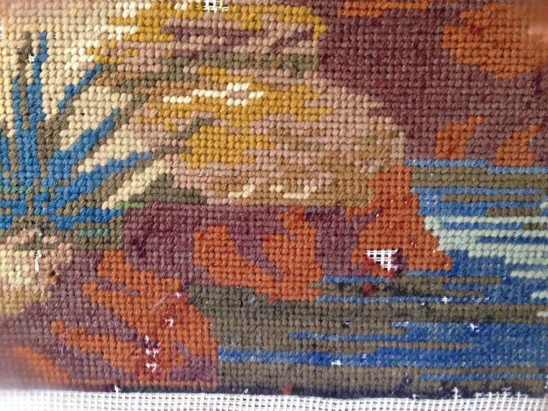 Antique Victorian Woolwork Needlepoint Tapestry of