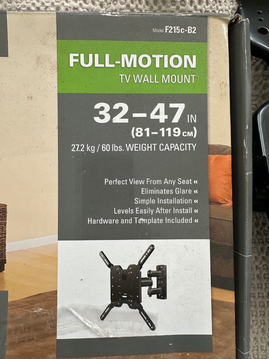 Mathew Dixon Posted 4 hours ago Share Posted 4 hours ago (edited) The Sanus Vuepoint F215C-B2 is a full motion TV wall bracket designed for 32 to 47-inch TVs, with a maximum load capacity of 27.27 kg. This unit is UL safety listed and includes installation hardware, cable management features. With a pivot movement of 45 degrees and a tilt movement of 15 to -15 degrees, this TV wall bracket provides flexibility in adjusting the viewing angle. Edited 4 hours ago by Mathew Dixon Link to comment https://www.eastdulwichforum.co.uk/topic/370972-sanus-vuepoint-f215c-b2-%C2%A320-full-motion-tv-wall-bracket-for-32-47-inches/ Share on other sites More sharing options...