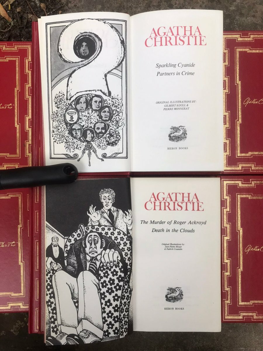 Thunderblue Posted 2 hours ago Share Posted 2 hours ago PRICE COMPARISON: For £250 I am offering this complete collection in EXCELLENT condition. The same collections are available for considerably more £££ but NOT of comparable condition. The Agatha Christie 40 Book Complete Collection by Heron Books is a luxury edition set published in 1978 (Who's Who Published 1980), featuring hardback bindings and illustrations. This vintage collection includes all the works of the famous author in the crime and thriller genre. Perfect for any Agatha Christie fan or collector of literary works, this set is a valuable addition to any bookshelf, offering a classic and timeless collection of novels and poems. A wonderful collection of books that will fill hours of brilliant reading but will also enhance any fabulous home library. 40 x red leatherette bound hardback books, gilt titles on spines, with author's gilt signature on front boards, each book with its own attached yellow ribbon bookmarker. CONDITION: (also see photos) x39 Excellent 'as new' Who's Who, Slight corner impact and paper edges between the covers have slight markings. GETTING THE COLLECTION TO YOU: A) You can arrange to collect in person from Blackheath London SE13 7PG with driveway parking. B) An additional £23 for EVRI Courier delivery to your address with 'electronic signature.' PAYMENT OPTIONS: Bank Transfer or via Paypal. All 39 x books have two stories per book,the 40th Book titled, "The Who's Who Reference" has only one title. VOLUME LIST AS FOLLOWS: 1: MURDER ON THE ORIENT EXPRESS/A MURDER IS ANNOUNCED, 2: WHY DIDN'T THEY ASK EVANS/THE ABC MURDERS, 3: THE MURDER OF ROGER ACKROYD/DEATH IN THE CLOUDS, 4: DEATH ON THE NILE/THEY DO IT WITH MIRRORS, 5: THE 4.50 FROM PADDINGTON/10 LITTLE., 6: ORDEAL BY INNOCENCE/CAT AMONGST THE PIGEONS, 7: CARDS ON THE TABLE/THREE ACT TRAGEDY, 8: AT BETRAM'S HOTEL/THIRTEEN PROBLEMS, 9: CROOKED HOUSE/PASSENGER TO FRANKFURT, 10: N OR M/A CARIBBEAN MYSTERY, 11: CURTAIN/SLEEPING MURDER, 12: POIROT'S EARLY CASES/POSTERN OF FATE, 13: NEMESIS/THE MIRROR CRACK'D FROM SIDE TO SIDE, 14: SPARKLING CYANIDE/PARTNERS IN CRIME, 15: HALLOWE'EN PARTY/THIRD GIRL, 16: DUMB WITNESS/THE HOLLOW, 17: SAD CYPRESS/FIVE LITTLE PIGS, 18: THE MYSTERY OF THE BLUE TRAIN/HERCULE POIROT'S CHRISTMAS, 19: ENDLESS NIGHT/THEY CAME TO BAGHDAD, 20: DESTINATION UNKNOWN/THE MURDER AT THE VICARAGE, 21: LORD EDGEWARE DIES/TOWARDS ZERO, 22: MURDER IN THE MEWS/THE SEVEN DIALS MYSTERY, 23: DEAD MAN'S FOLLY/ELEPHANTS CAN REMEMBER, 24: THE SITTAFORD MYSTERY/AFTER THE FUNERAL, 25: ONE, TWO, BUCKLE MY SHOE/EVIL UNDER THE SUN, 26: THE MURDER ON THE LINKS/THE SECRET ADVERSARY, 27: PERIL AT THE END OF THE HOUSE/THE PALE HORSE, 28: APPOINTMENT WITH DEATH/MURDER IS EASY, 29: TAKEN AT THE FLOOD/HICKORY, DICKORY DOCK, 30: MRS McGINTY'S DEAD/THE LABOURS OF HERCULES, 31: THE MYSTERIOUS MR QUIN/DEATH COMES AT THE END, 32: THE LISTERDALE MYSTERY/THE CLOCKS, 33: THE ADVENTURE OF THE CHRISTMAS PUDDING/THE HOUND OF DEATH, 34: THE BIG FOUR/MURDER IN MESOPOTANIA, 35: A POCKET FULL OF RYE/THIRTEEN FOR LUCK, 36: THE MAN IN THE BROWN SUIT/THE SECRET OF CHIMNEYS, 37: BY THE PRICKING OF MY THUMBS/PARKER PYNE INVESTIGATES, 38: THE MOVING FINGER/THE BODY IN THE LIBRARY, 39: THE MYSTERIOUS AFFAIR AT STYLES/POIROT INVESTIGATES, 40: THE WHO'S WHO REFERENCE. By Randall Toyle Link to comment https://www.eastdulwichforum.co.uk/topic/370981-%C2%A3175-agatha-christie-collected-works-40-x-red-hardback-heron-books/ Share on other sites More sharing options...