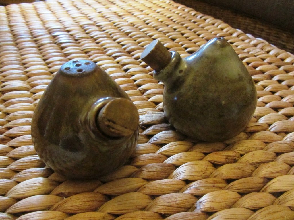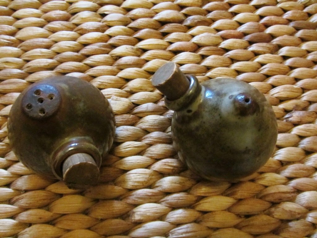 British stoneware studio pottery, a vintage salt and pepper shaker handmade at The Friars in Aylesford Village, Kent.