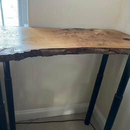 I made this desk myself. I bought the solid oak panel from a place in Epping Forest that collected fallen trees.