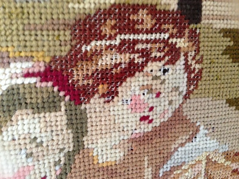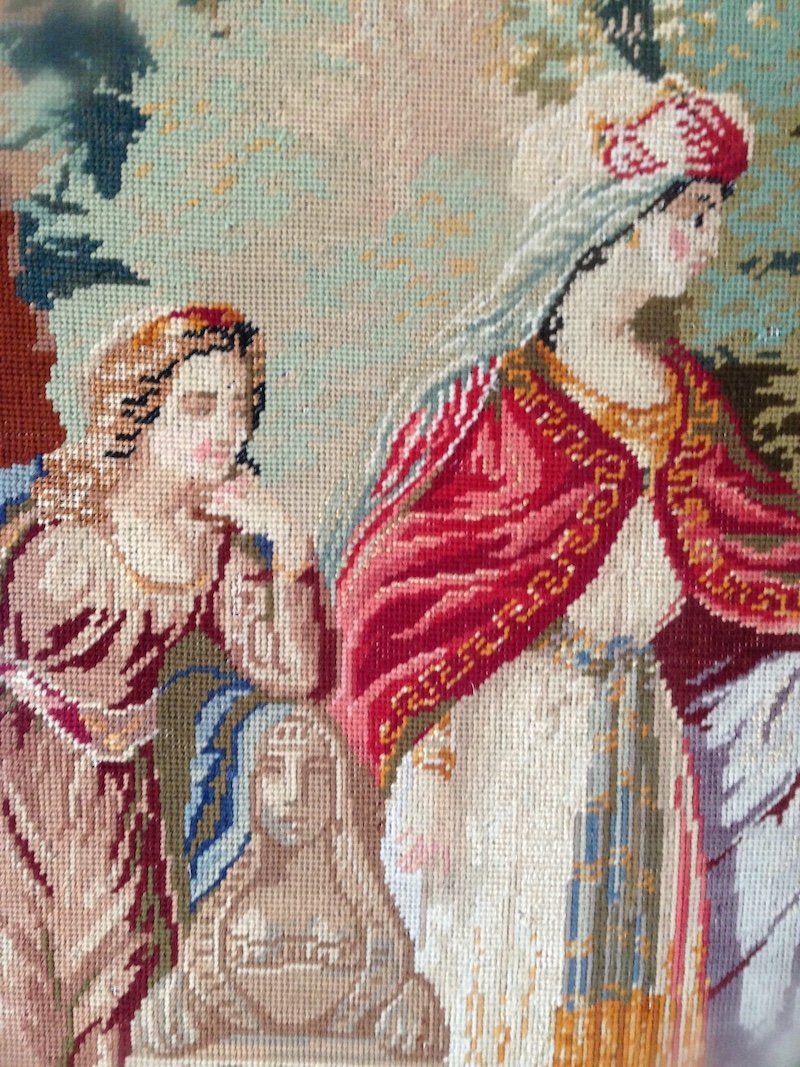 Antique Victorian Large Woolwork Needlepoint Tapestry Moses in Bullrushes Egypt For Sale