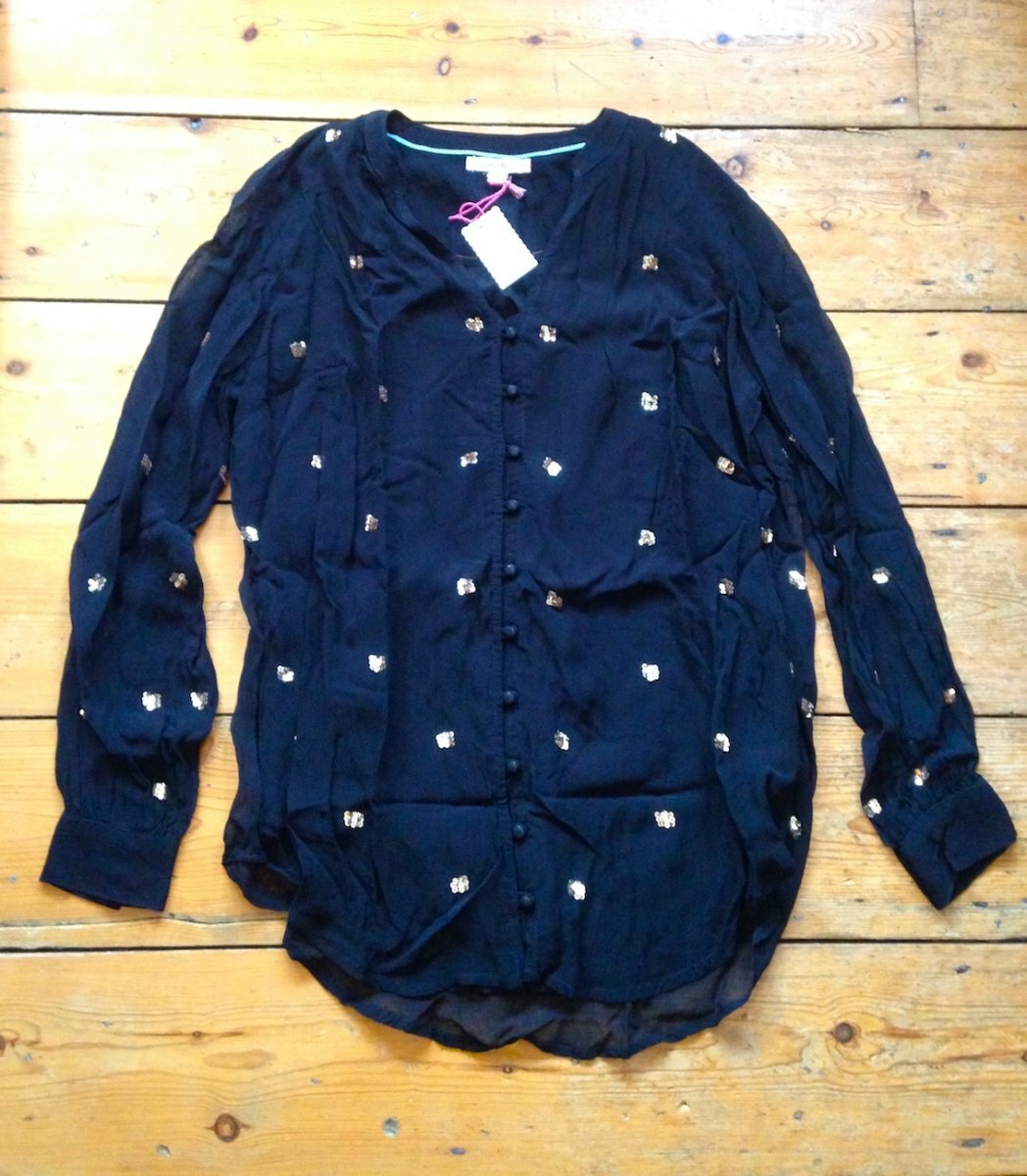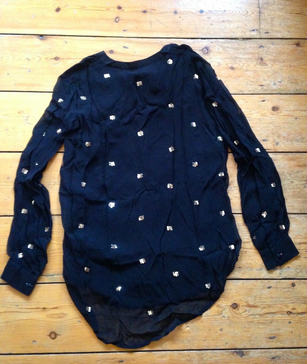 White Stuff Black and Gold Sequined Underlined Blouse Shirt Size 12 New with tags