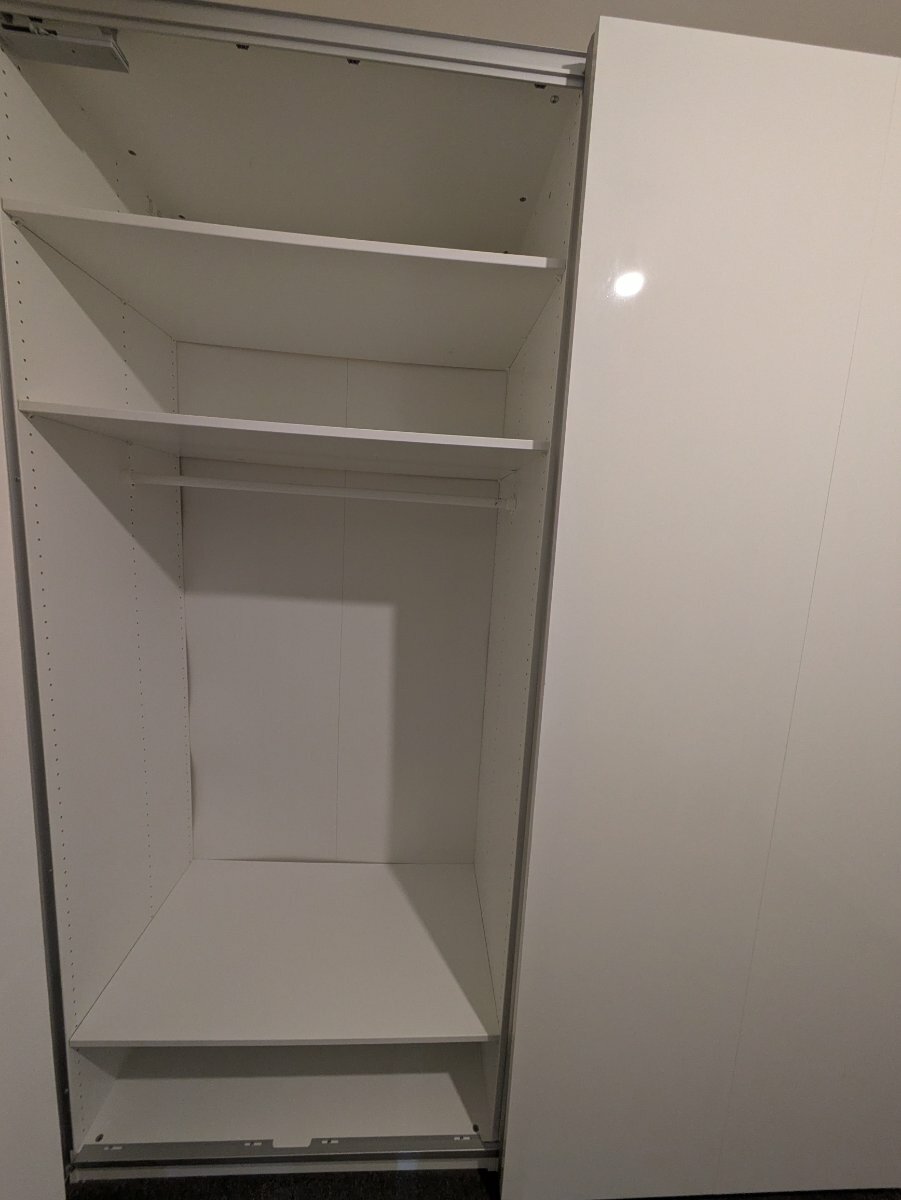 Hasvik sliding doors, 4 drawers, clothes rail, shelves.