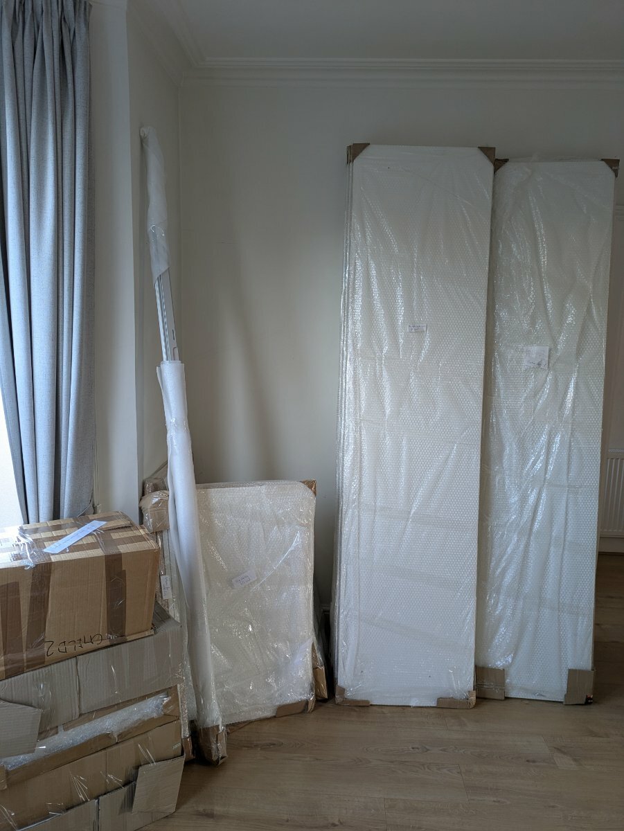 3 years old, never travelled before (assembled only once before), great condition without any noticeable damage (just one drawer a little bit chipped underneath but not visible and does not affect its operations), very carefully packed with each piece in bubble wrap and with all corners protected, each piece named and all bolts and nuts sorted by section and named.