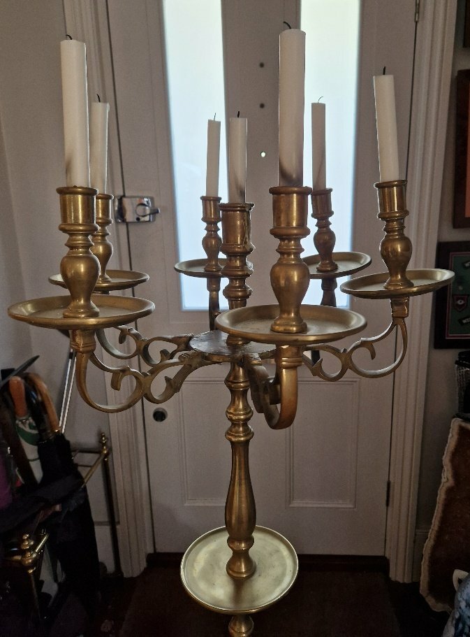 And yes, some of the candleholders do bend in a little, but I'm certain that's the original casting, as the arms are too solid to bend back20250812_180516_resized.thumb.jpg.577d797f90419798f5178b991a1a496f.jpg. The candles (which I've now used, so none supplied) easily adjusted to remain upright for safe lighting.