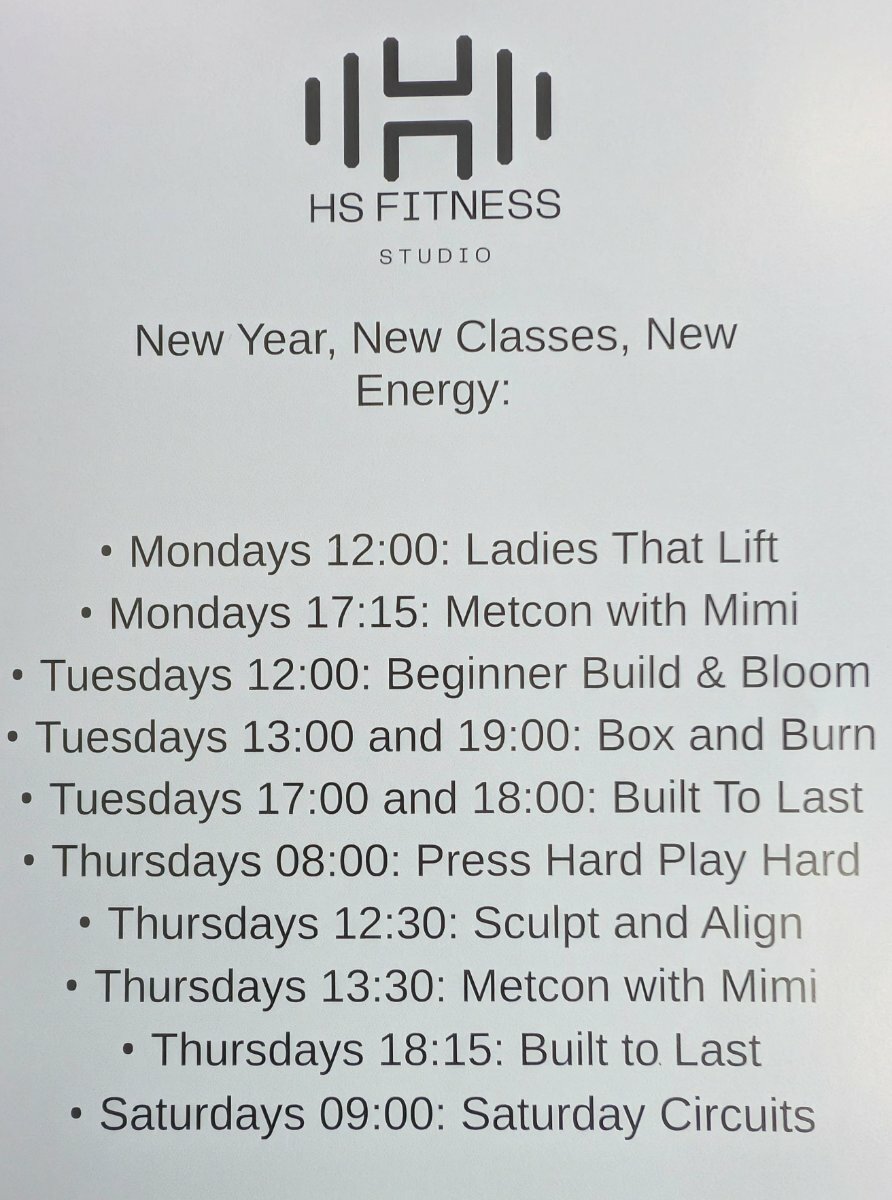 More information about each class is on the website: www.hsfitness.co.uk or our instagram page: hsfitnessstudio