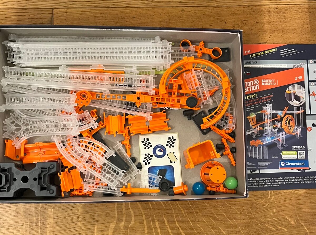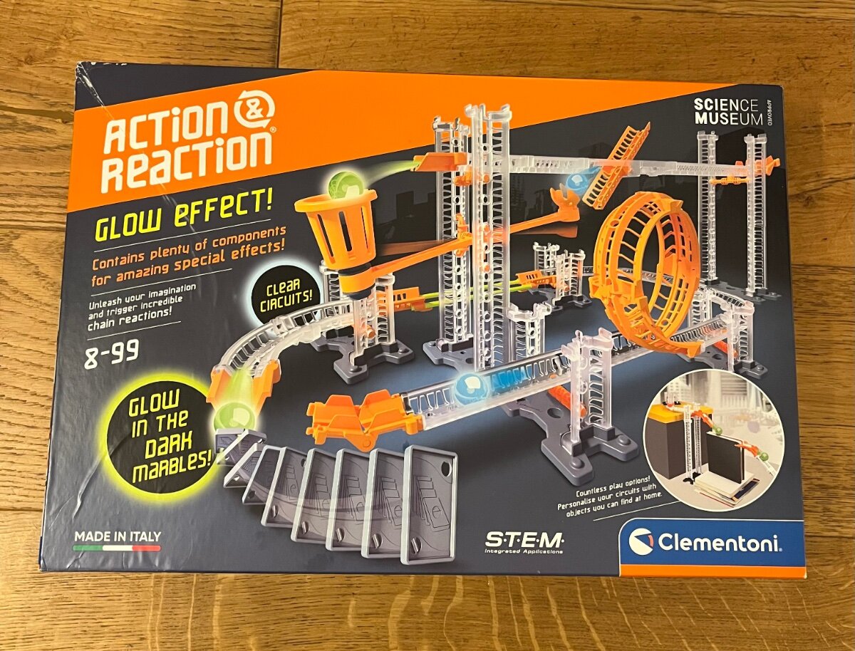 Clementoni - Action and Reaction-Glow Effect, Building Set, Marble Track for Children