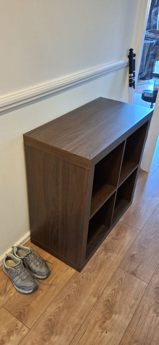 Tal Posted 5 hours ago Share Posted 5 hours ago I am selling 3 IKEA EXPEDIT 2×2 shelving units in a walnut/brown wood effect finish. This is the discontinued EXPEDIT range, the predecessor to IKEA KALLAX. EXPEDIT units are slightly larger and sturdier than the current KALLAX version. Description 4 open cube compartments in a 2×2 layout Can be used vertically or horizontally No back panel, open on both sides Solid, heavier construction compared to KALLAX Walnut/brown wood-effect finish with visible grain Measurements Height: 79 cm Width: 79 cm Depth: 40 cm Condition Used, good overall condition No structural damage Link to comment https://www.eastdulwichforum.co.uk/topic/371923-ikea-expedit-2%C3%972-shelving-unit-%E2%80%93-walnutbrown-%C2%A320-for-one-or-%C2%A350-for-3/ Share on other sites More sharing options...