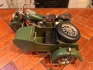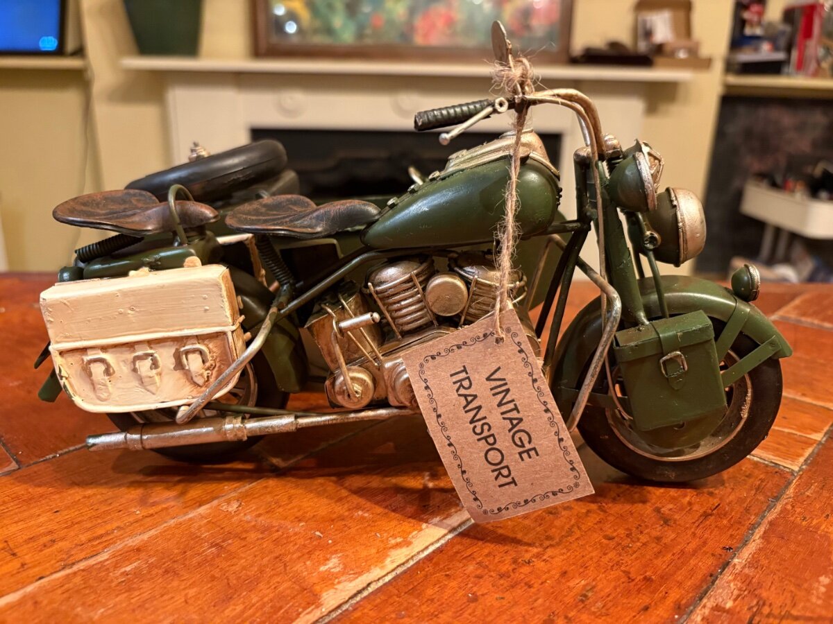 Vintage Style Motorcycle & Sidecar Metal Model – Military Green